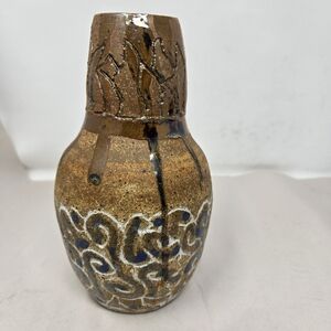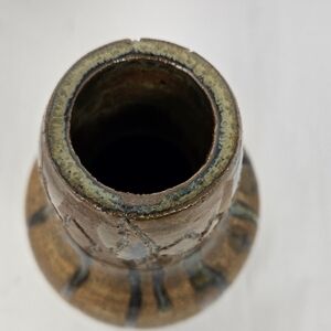 Rustic Pottery Vase Brown & Blue Dripped Glaze Round 7x4 Circumference 12.75