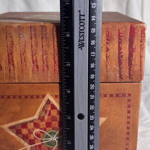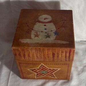 This Rustic Primitive Snowman Box manufactured in 2003 by Bob's boxes features "Winter's Best" artwork of Susan Winget. Made in China. Fits the rustic, primitive, grandma aesthetic.