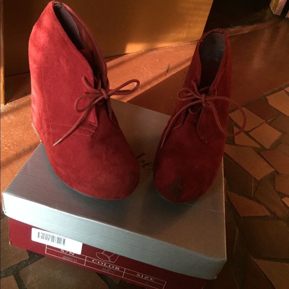 This wedged heel is a burnt orange reddish, rust color. Perfect for the fall weather! Has only been worn twice โ๐พ. Willing to negotiate. ๐๐