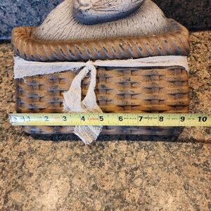 Charming 2 sided rabbit wall hanging. Features a woven basket design. Perfect for rustic decor. Heavy and made well with metal grommets for hanging.