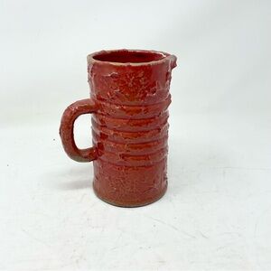 Add a touch of rustic charm to your home with this vibrant red ceramic pitcher. Perfect for serving or as a decorative piece.
