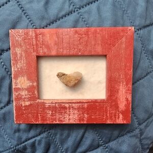 Add a touch of rustic charm to your home with this red frame featuring a heart-shaped stone. Perfect for adding warmth and character to any room.