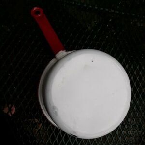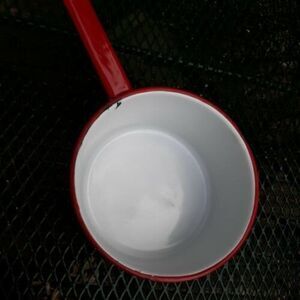 Rustic Red and White Enamelware Sauce Pan with Handle 2 qt.