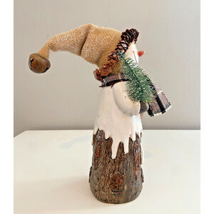 Rustic Resin Burlap Hat Snowman, 9.5"H