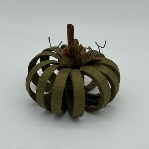 Olivw Green Satin Wrapped Pumpkin Decor. Perfect for fall decorating, tablescapes, shelves, or any autumn themed displays. Hand crafted. Approximately 6.5” wide, 6” tall.