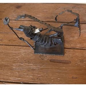 Rustic Scrap Metal SKIER Spark Plug Bolt Metal Art Sculpture Signed K. Moore