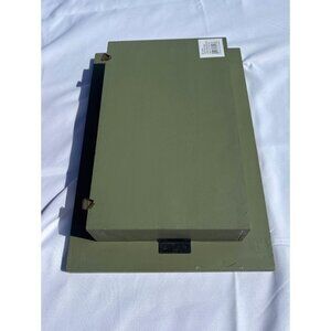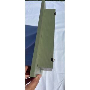• Distressed green wooden frame with a glass front