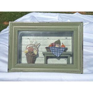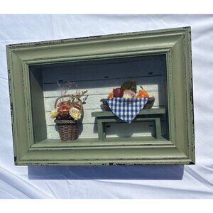 Rustic Shadow Box Wall Art, Mini Fruit Flower Display Green Frame Granny Cottage