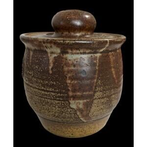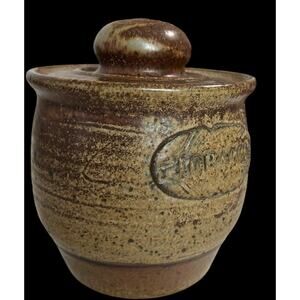 Rustic Stoneware Pottery Lidded TOBACCO Canister Container Jar Signed