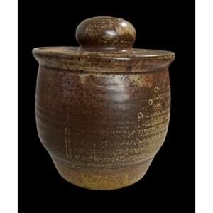 Rustic Stoneware Pottery Lidded TOBACCO Canister Container Jar