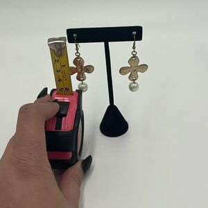 Rustic Style Hammered Gold Tone and Faux Pearl Floral Dangle Earrings