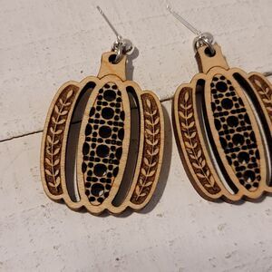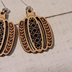 Earrings are laser cut. Made from hardwood Maple cut and etched using a laser machine i own.