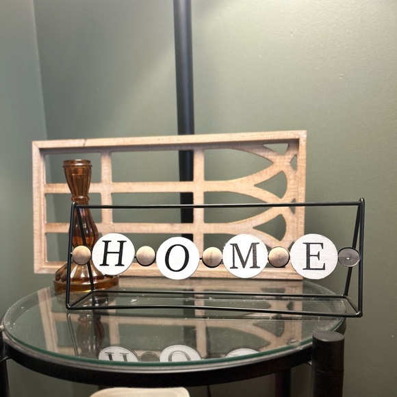 Rustic table decor set. Includes -HOME sign -Amber Candle Holder -Wooden Decor Design