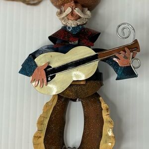 Look no further for the perfect gift for your cowboy decor lover in your life! This guitar playing marionette (you can make him swivel from side to side) cowboy is sure to be a hit on your Christmas tree! It does have some minor paint wear on one of his hands as photographed but in otherwise very good condition. Measures approximately 5.5” tall and 3.5” wide.