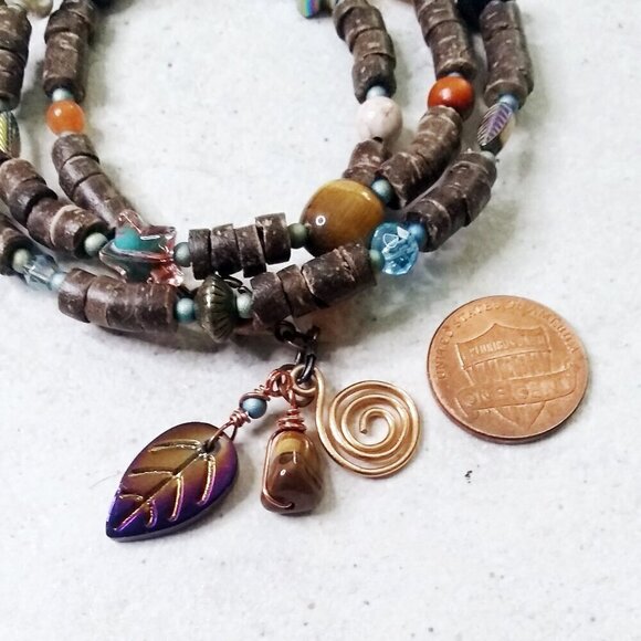 Rustic Triple Wrap Bracelet! Coconut Hull + Mixed Semi Precious Beads