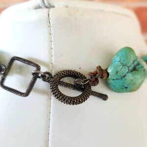 Rustic Turquoise Nugget Necklace With Large Oval Stone Pendant & Leather Cord