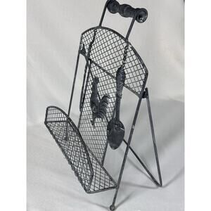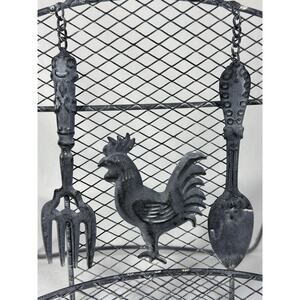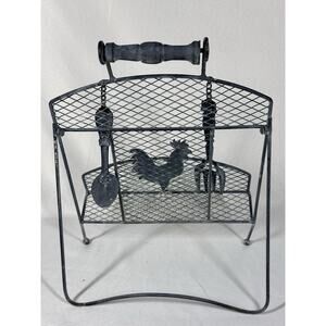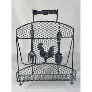 Rustic VTG Metal Rooster Spoon Cookbook Napkins Holder Stand Farmhouse Decor