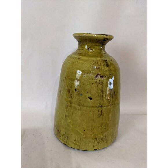 Rustic Vintage Yellow Ceramic Vase With Crackle Glaze Finish 7' green farmhouse