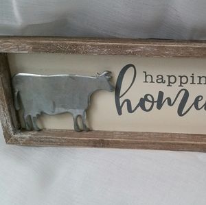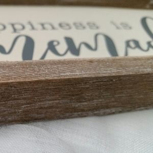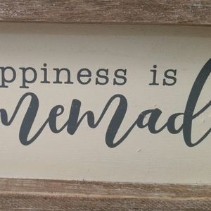 Sign reads, "Happiness is Homemade" framed by a warm tone antique wooden style frame.