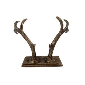 Rustic Wall-Mounted Antler Hook Rack Bronze Finish Sturdy Metal Design 10" Wide