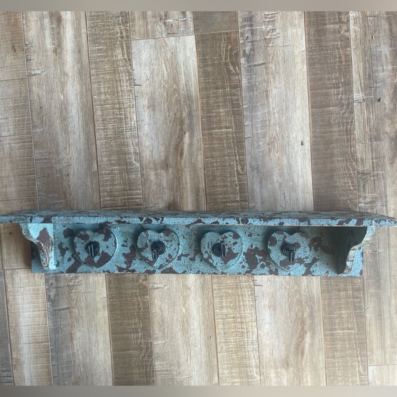 Add a touch of rustic charm to your home with this wall-mounted coat rack. Featuring a distressed blue and brown finish, it offers both style and functionality.