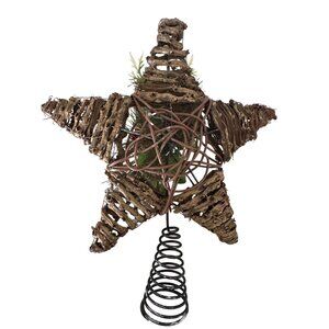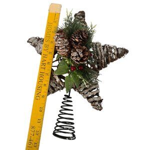 Rustic Wicker Star Christmas Tree Topper With Pinecones & Faux Greenery - 10" Ta
