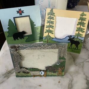 Enhance your home decor with this charming set of rustic wildlife picture frames. Featuring a bear, moose, and Yellowstone National Park theme, these frames add a touch of nature to any room. Perfect for showcasing your favorite memories.