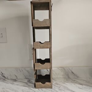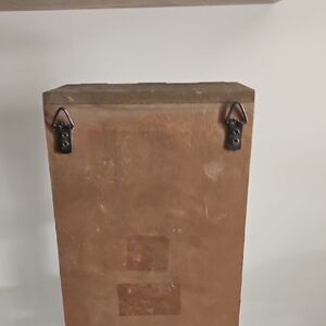 You can hang it or keep it on the counter. Comes with 2 anchors and screws.