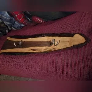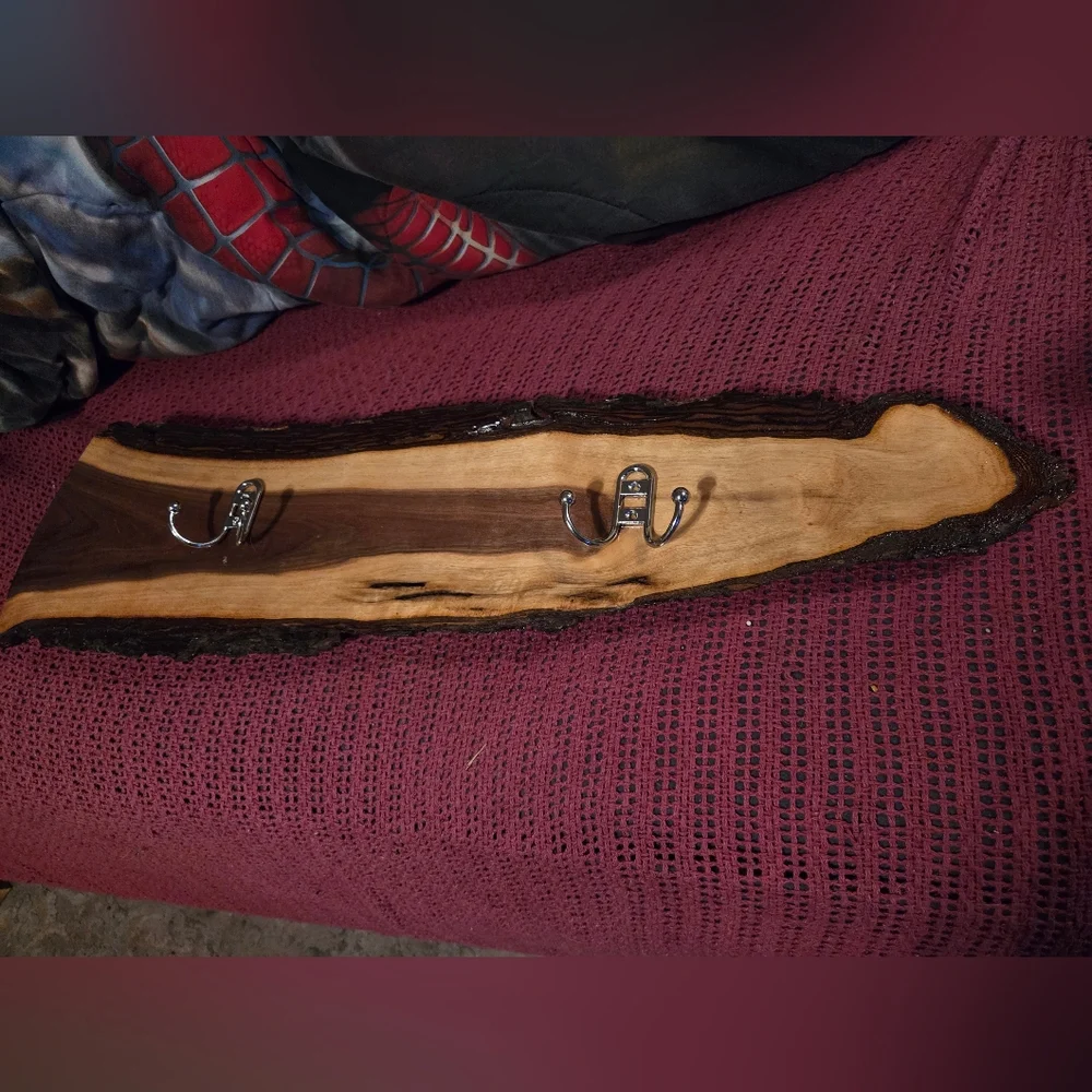 Natural wood wall hook rack with metal hooks. Perfect for adding a rustic touch to any room.
