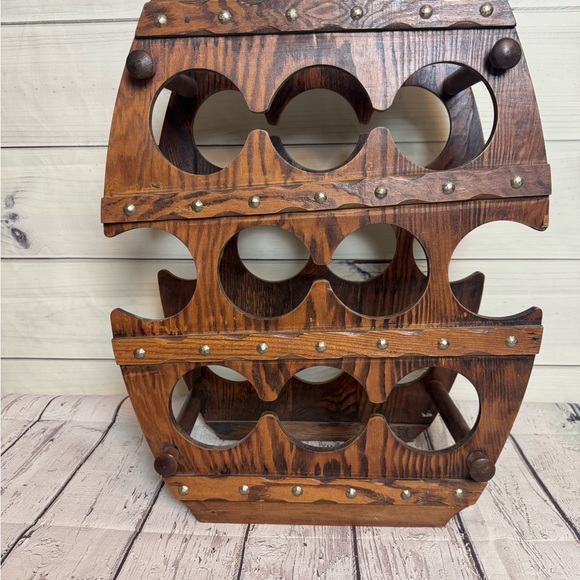 Beautiful rustic wooden wine rack. Holds multiple bottles. Perfect for home decor.