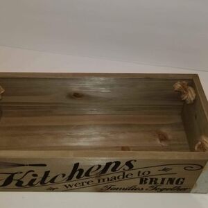 Enhance your kitchen decor with this rustic wooden storage box. Perfect for organizing essentials while adding a touch of charm. The natural brown finish complements any kitchen style.