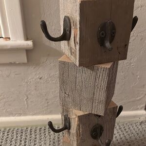 Enhance your home with this wooden farmhouse hook decor. Featuring a natural wood finish and black metal hooks, it's perfect for adding a touch of farmhouse charm to any room.