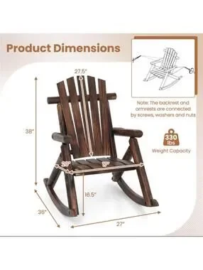 Welcome to Amies Finds! Our items are all open box, tested when applicable, and any defects will be listed here in the description. This rustic wooden rocking chair is perfect for relaxing on your porch or in your living room. It features a sturdy build with a comfortable slatted back and armrests. Weight capacity is 330 lbs. Dimensions: 38"H x 27"W x 36"D. Crossposted for quick sale. Ships or pick up on Ranfield Rd in Mogadore, Ohio. Returns accepted at our discretion.