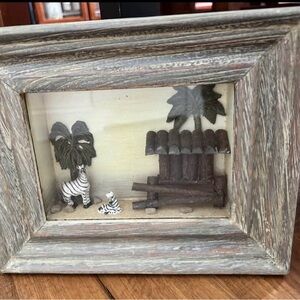 Safari style wall decor. Enhance your home with this rustic wooden shadow box set. One shadow box includes giraffes. One shadow box includes zebras. One shadow box includes three masks.