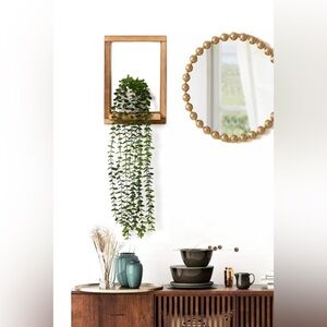 Enhance your home with this rustic wooden wall frame featuring lush green foliage. Perfect for adding a touch of nature to any room.