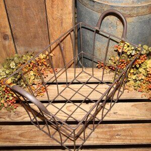 basket, wrought iron, rustic, farmhouse, french country, storage, decor, fall