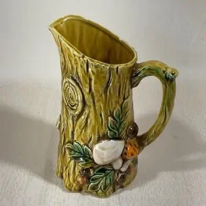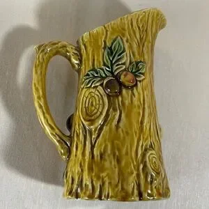 Bring nature indoors with this rustic yellow tree trunk pitcher. Perfect for adding a touch of woodland charm to your home decor.