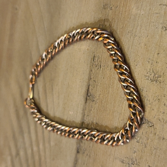 Rustic metal bracelet with clasp closure. Silver and copper colors. Made of regular metals.