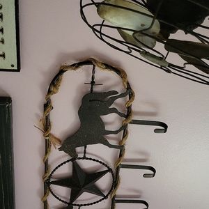Rustic metal wall mounted coat hooks. Excellent condition. From non-smoking home.