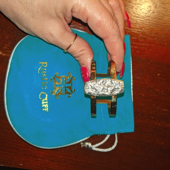 Rustic cuff bracelet middle stone is silver in color and the band is a gold color in great condition comes with dust bag