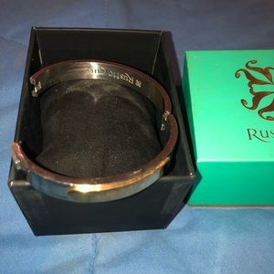 Two tone Rustic cuff clasp bangle. Silver with gold nameplate that reads love.