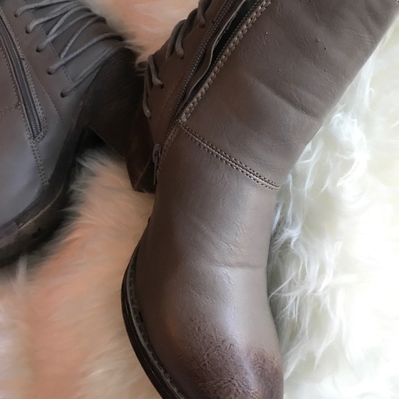Very comfortable booties! Perfect condition. Only worn 2 or 3 times at most. Color is hard to describe but they’re more grey with a touch of the burnt brown on the toe!