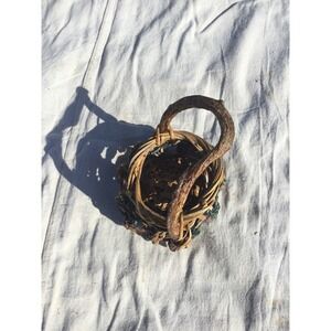 Rustic handmade small basket 7” 7 in brown green bohemian rustic witch fairy