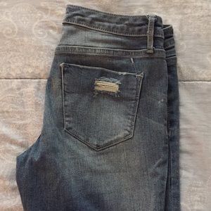 Super cute, somewhat of a rustic/distressed design to the jeans. VERY comfy and stretchy but true to size. Barely worn.