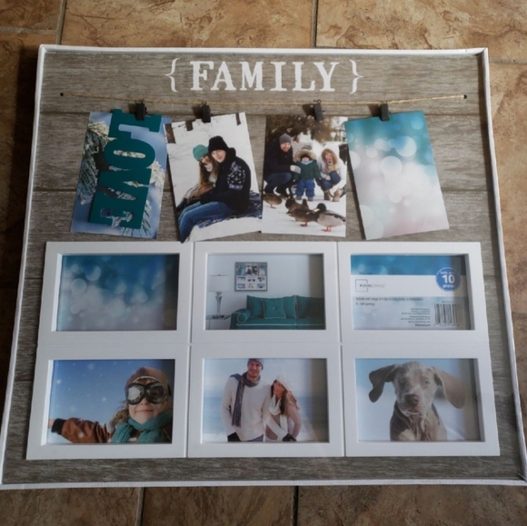rustic frame 22x20 has 4 clips to hold photos and 6- 4x6 frames