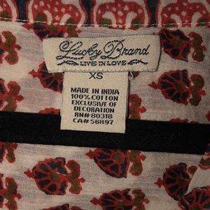 Size xs, lucky brand flowy fall shirt, fair condition