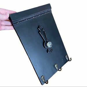 Key hook is wood with decorative molding and antique inspired crystal door knob. 3 hooks for keys. 8 x 12