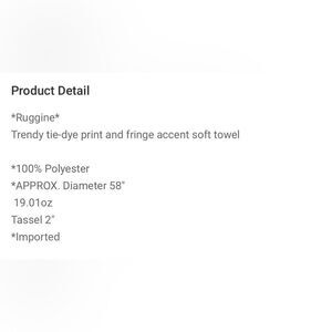 Brand new boutique beach towel. Gorgeous rustic aurora color. 58” diameter
