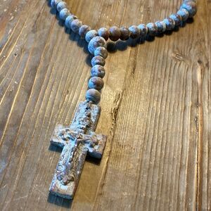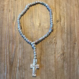 RusticClay Ceramic White Pale Blue Rosary Beads Distressed Decor Garden Necklace