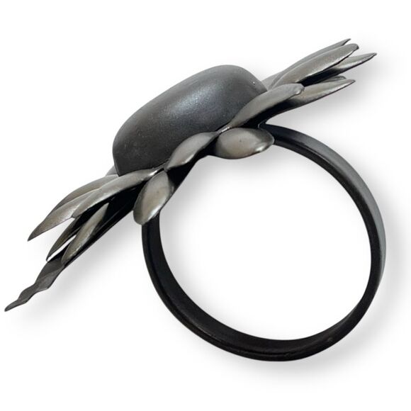 Gray/Bronze Brown Metal Button Daisy Flower Napkin Rings